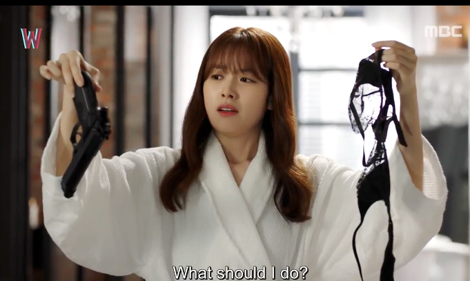 シースルーと拳銃を見比べながら。。。悩むヨンジュ